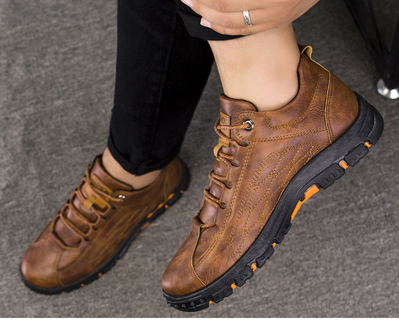 Men Leather Hand Stitching Side Zipper Comfy Soft Ankle Boots