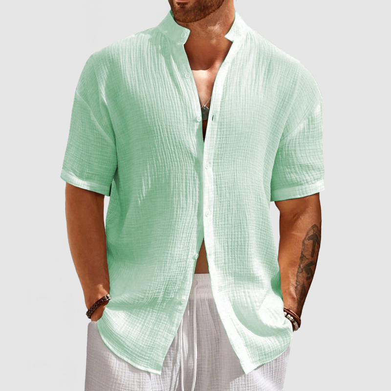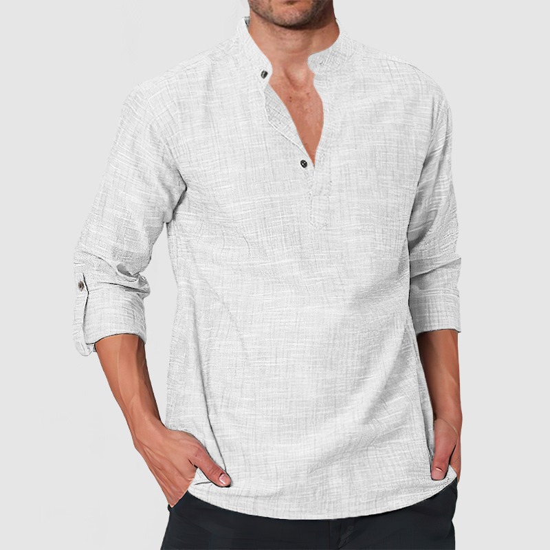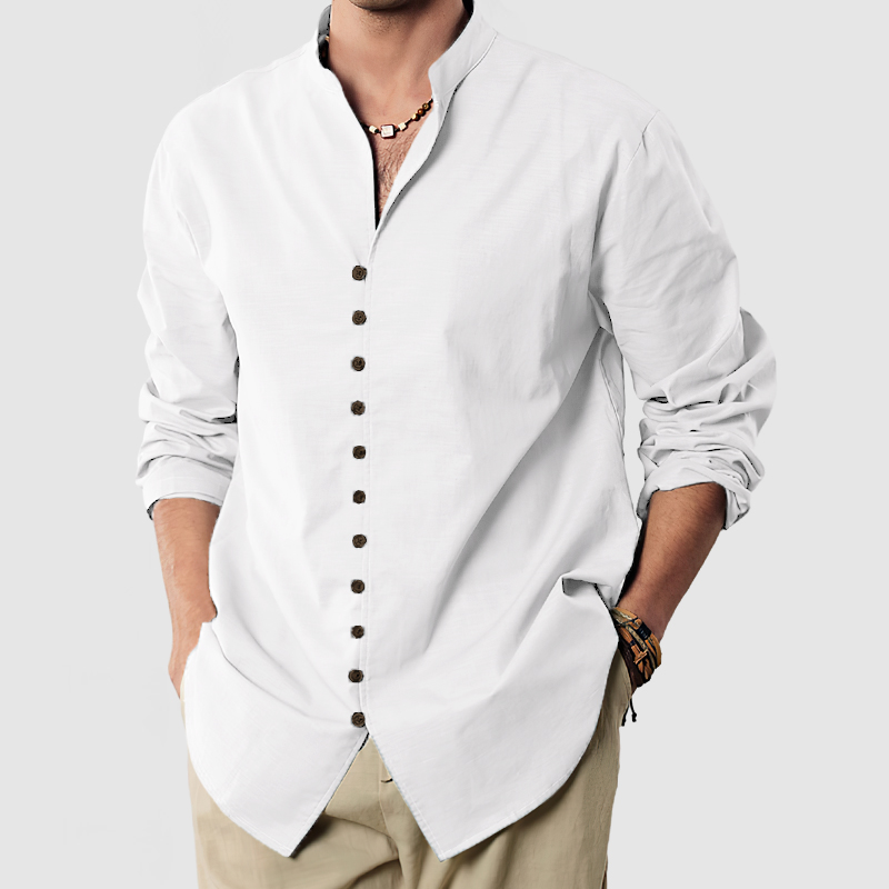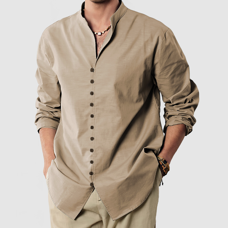 Gentleman's Standing Collar Button Down Cotton Linen Shirt
