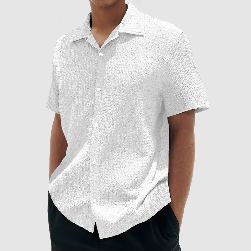 Men's Everyday Casual Cotton Textured Short Sleeve Shirt