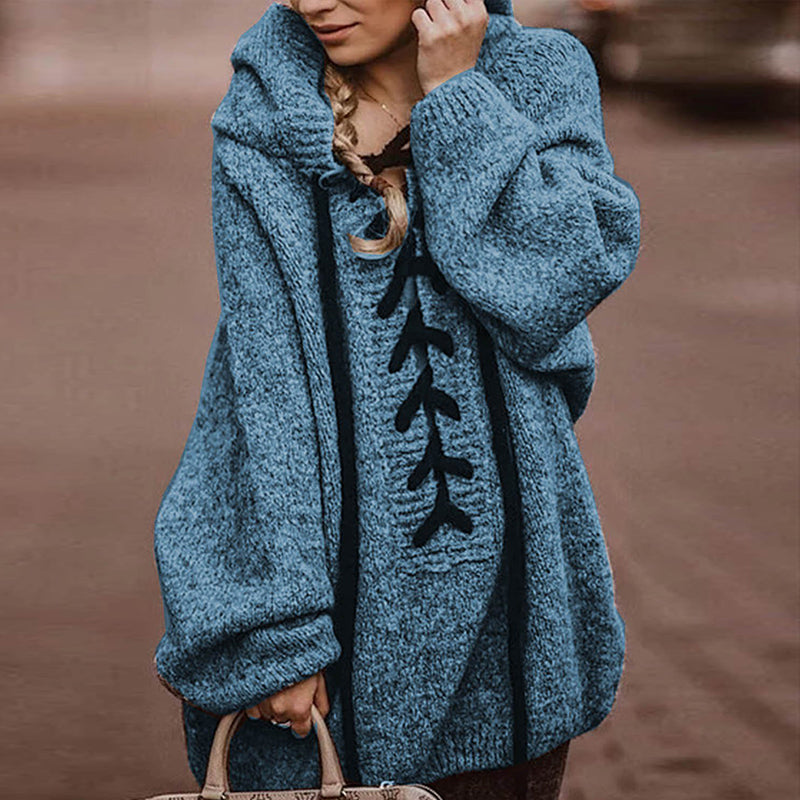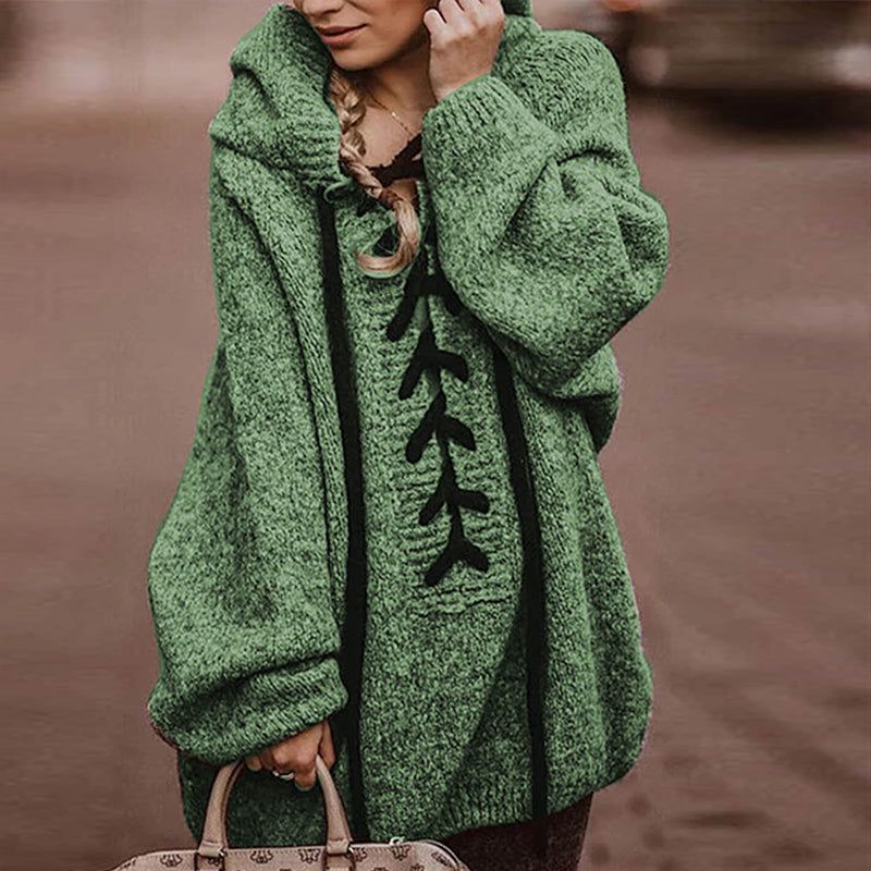 Solid Color Mid-length Hooded Sweater