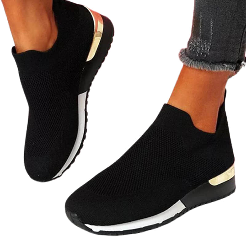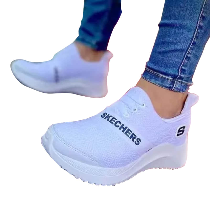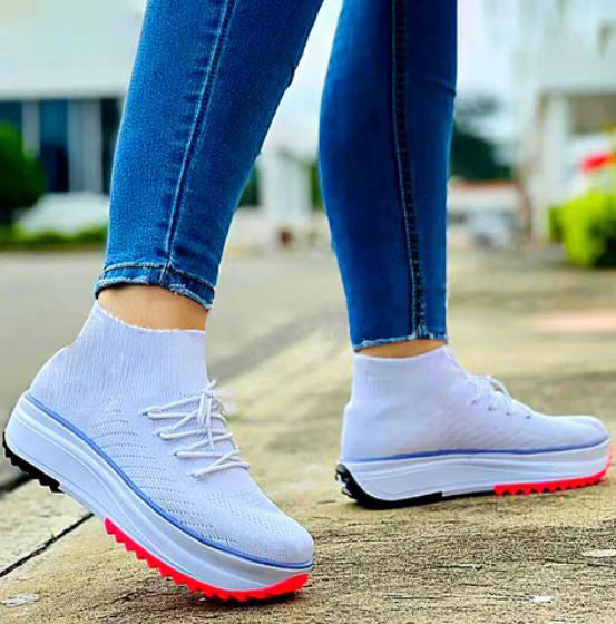 Women Comfy Casual Breathable Elastic Woven Detail Platform Rocker Sole Sneakers