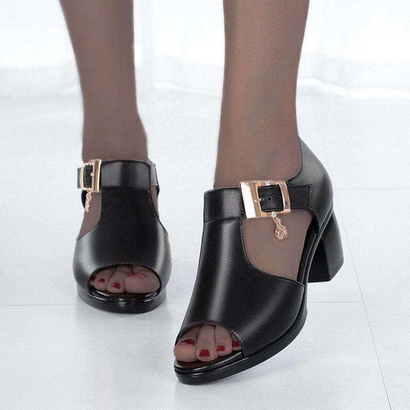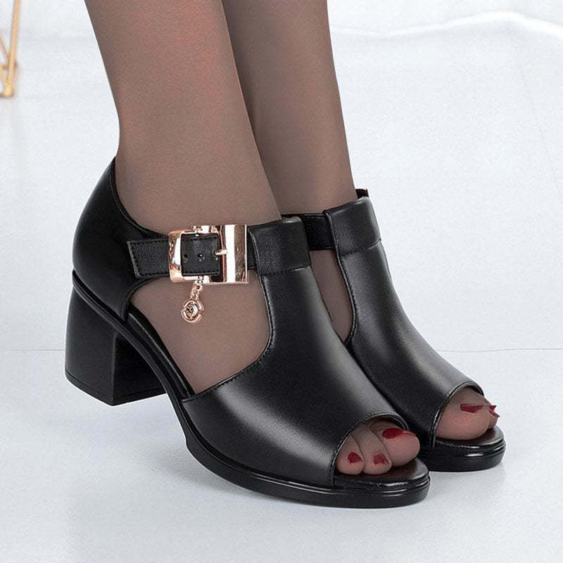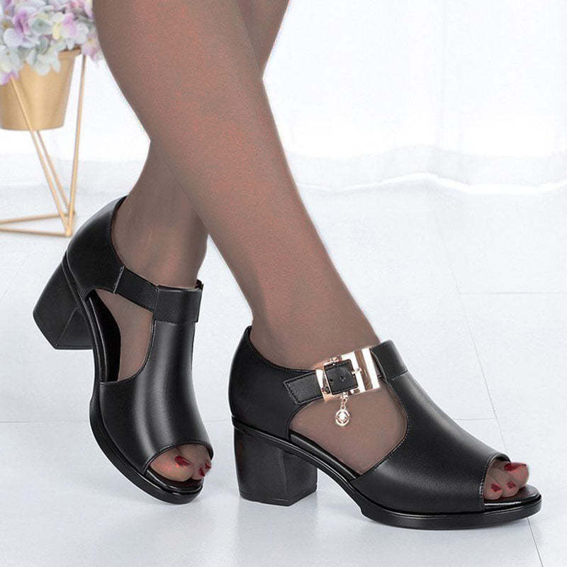 2022 Summer New Fish Mouth Fashion Casual Thick Heel Buckle Ladies Sandals