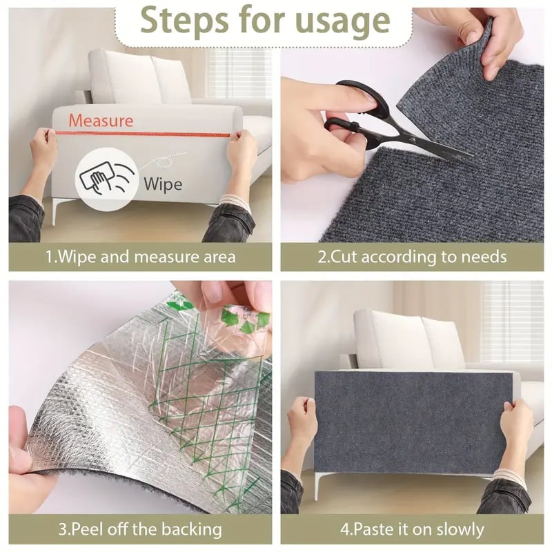 How to use - Cut to the size you need, just gently peel off a corner of the back of the cat scratching mat, and you can stick it anywhere you want to use it.
