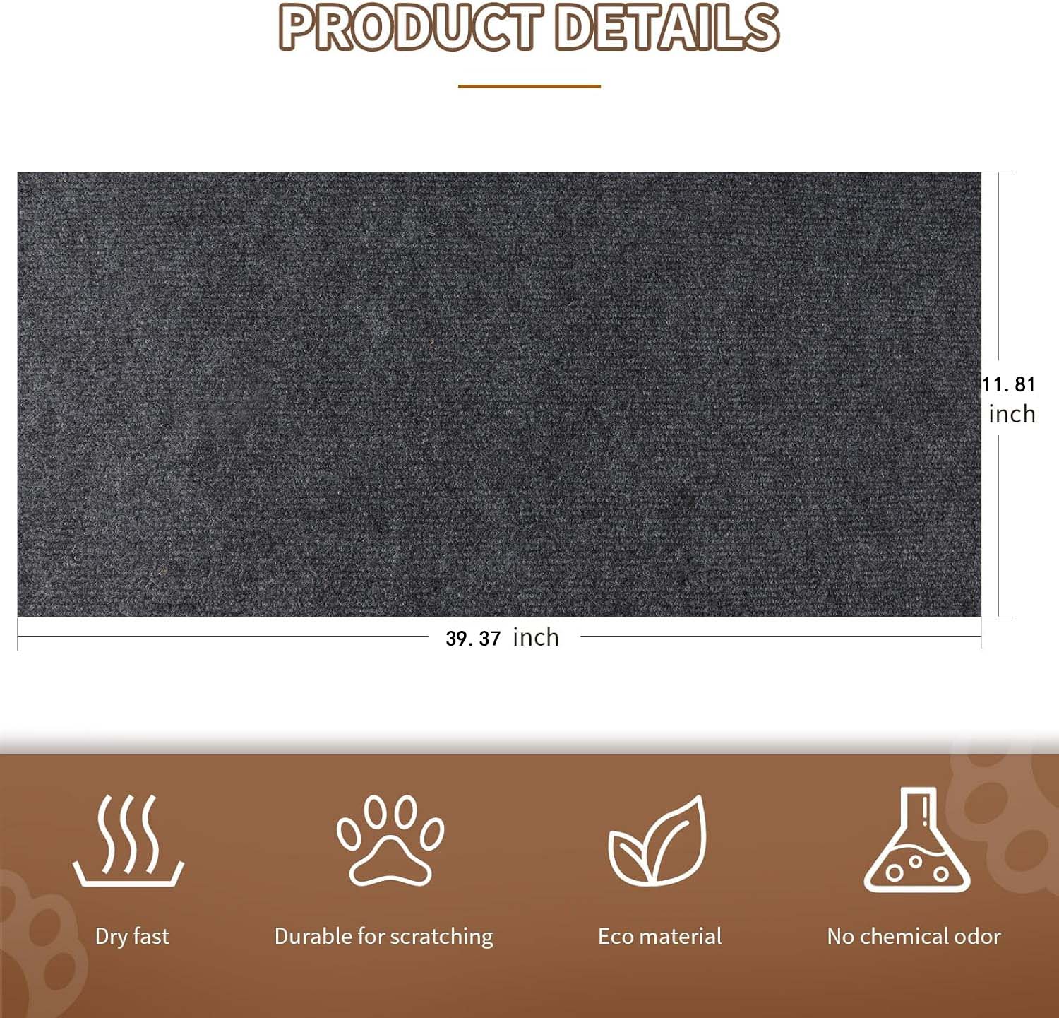 Healthy and Safe Material: The cat scratching mat is made of high-quality environmentally friendly polyester fiber. The unique self-adhesive backing ensures firm adhesion to various furniture surfaces and leaves no glue after disassembly.
