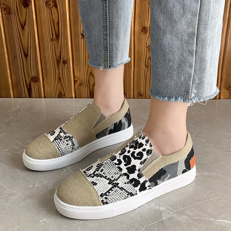 Women Gray Sneakers Casual Raw Edge Canvas Sneakers Slip-on Flat Sneakers
