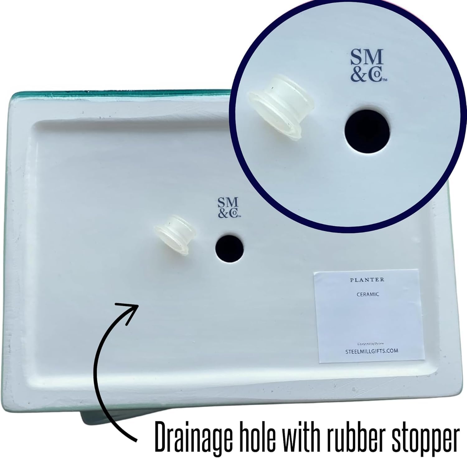 Includes a drainage hole with removable stopper, making it suitable for succulents, small houseplants, or herbs.